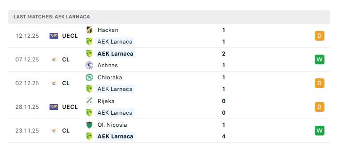 Phong độ gần đây AEK Larnaca vs Shkendija
