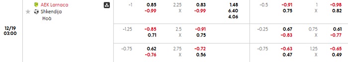 Bảng tỷ lệ kèo nhà cái AEK Larnaca vs Shkendija
