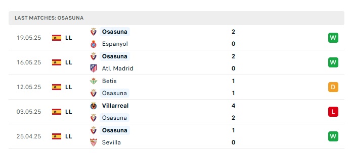 Hiện tại, phong độ thi đấu của hai đội đều đang rất tốt trong thời gian qua và không có sự chênh lệch lớn. Trong 5 vòng đấu gần nhất của Osasuna, họ được ghi nhận đã có 3 chiến thắng, 1 hòa và chỉ thua 1. Trong khi đó thì Osasuna lúc này đang có 3 chiến thắng 1 hòa và 1 thua trong 5 vòng gần nhất. Do đó, không quá bất ngờ nếu như đội khách Osasuna ngày hôm nay sẽ có 3 điểm trước đối.
