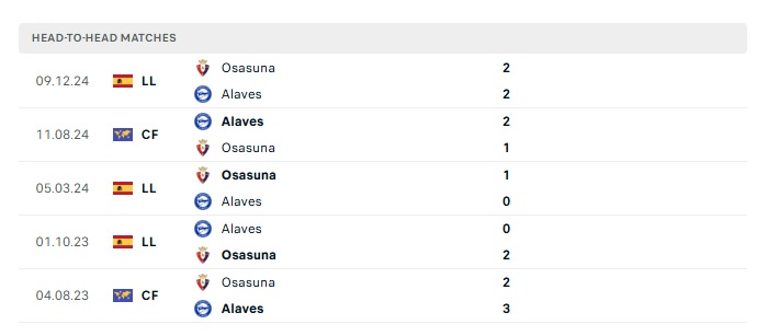 - Kèo tỷ số H2 Alaves vs Osasuna: 0-1