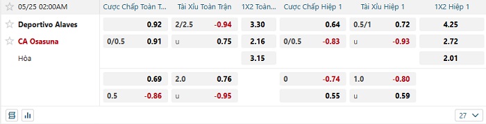 Soi kèo châu Á, kèo Alaves vs Osasuna