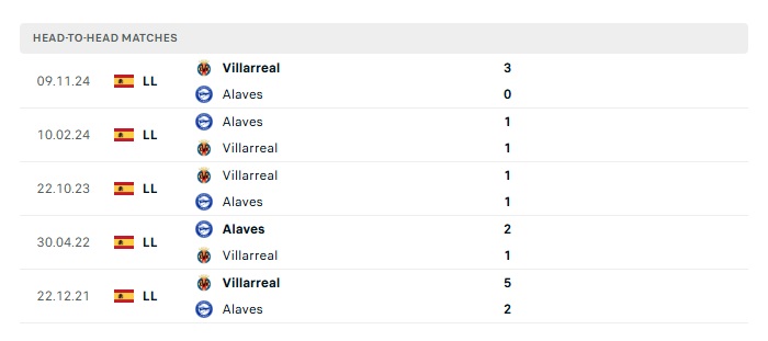 - Kèo tỷ số H2 Alaves vs Villarreal: 1-2