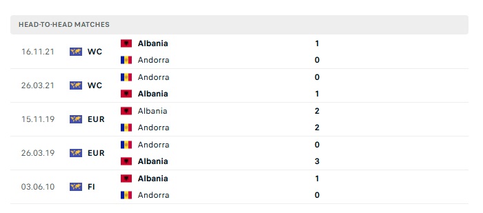 Với sức mạnh và có phong độ có phần nhỉnh hơn, Albania chắc chắn sẽ có cho mình 1 chiến thắng trọn vẹn trước Andorra. Trong 5 lần đụng độ nhau ở quá khứ, Albania đã bất bại với 4 chiến thắng và chỉ hòa 1. Trong khi đó thì với Andorra, 10 trận đấu gần nhất họ chỉ thắng 1, hòa 2 và thua 7. Thế nên ở kèo châu Âu trận đấu này, Albania chắc chắn sẽ trở thành lựa chọn đầu tư an toàn nhất.