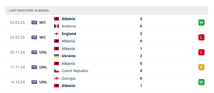 - Phong độ gần đây Albania
