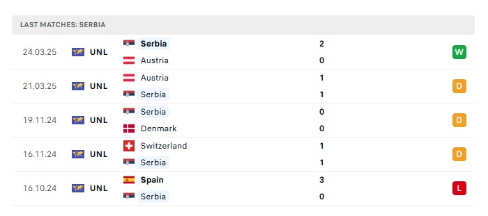 - Phong độ gần đây Serbia