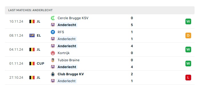 - Phong độ gần đây Anderlecht