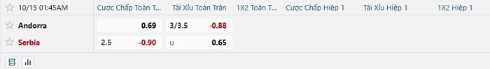 Bảng tỷ lệ kèo nhà cái Andorra vs Serbia