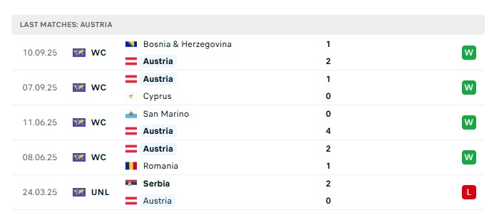 - Phong độ gần đây Áo