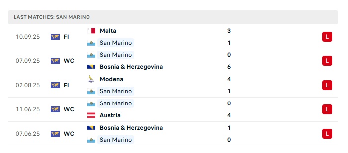 - Phong độ gần đây San Marino