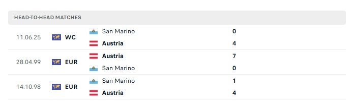 Lịch sử đối đầu Áo vs San Marino