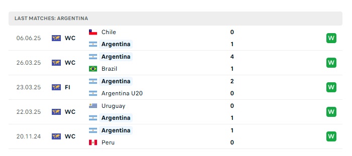 • Phong độ gần đây Argentina