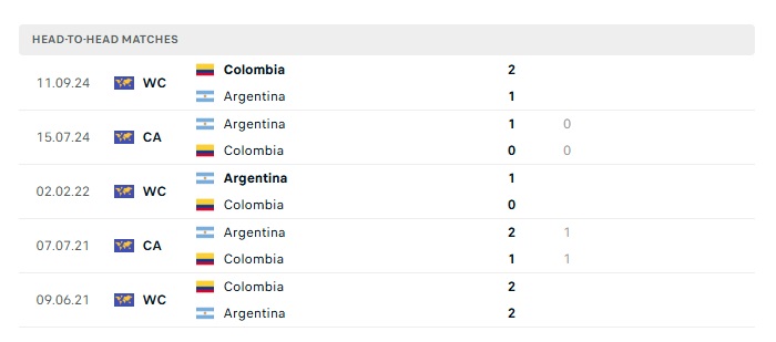 Lịch sử đối đầu Argentina vs Colombia