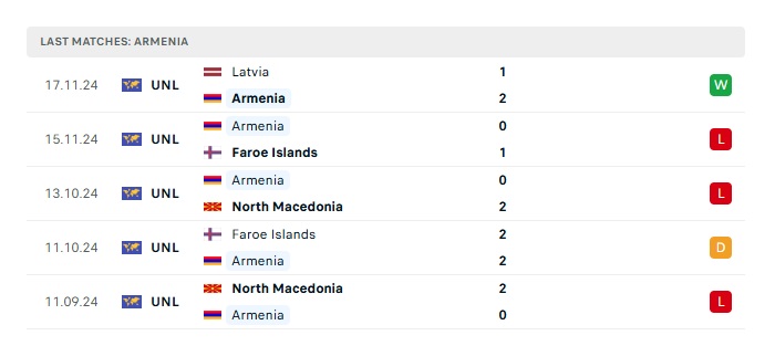 - Phong độ gần đây Armenia
