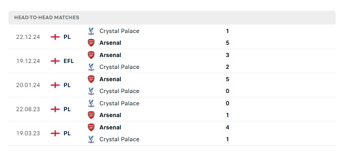 Lịch sử đối đầu Arsenal vs Crystal Palace
