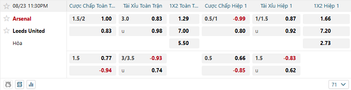 Soi kèo châu Á, kèo Arsenal vs Leeds Utd
