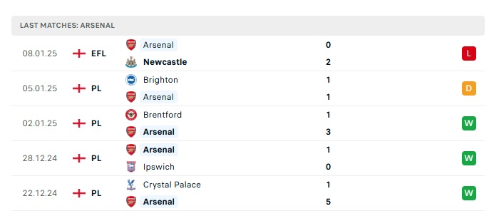 - Phong độ gần đây Arsenal