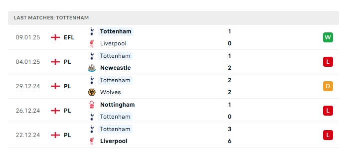 - Phong độ gần đây Tottenham