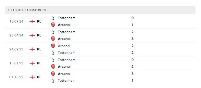 Phong độ gần đây Arsenal vs Tottenham