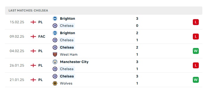 • Phong độ gần đây  Chelsea