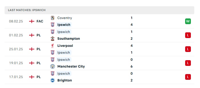 - Phong độ gần đây Ipswich
