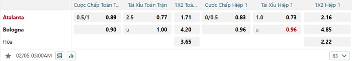 Bảng tỷ lệ kèo bóng đá Atalanta vs Bologna