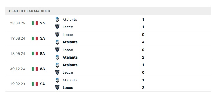 Tuy bất ổn là vậy nhưng với sức mạnh áp đảo, Atalanta vẫn sẽ có cho mình 1 chiến thắng nhờ vào lợi thế lớn từ sân nhà. Trong 4 lần đụng độ nhau gần nhất của hai đội, Atalanta cũng bất bại với 3 thắng và 1 hòa. Ngoài ra thì trong 4 trận đấu gần nhất của Lecce, họ chỉ có 1 thắng, 2 hòa và 1 thua. Do đó, kèo châu Âu trận đấu hôm nay sẽ khép lại với chủ nhà chính là lựa chọn an toàn nhất.