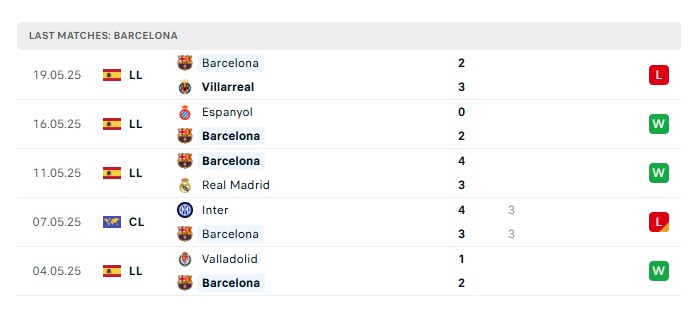- Phong độ gần đây Barcelona