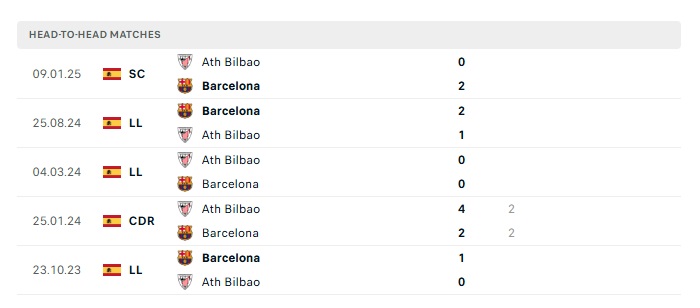 Phong độ gần đây Athletic Bilbao vs Barcelona