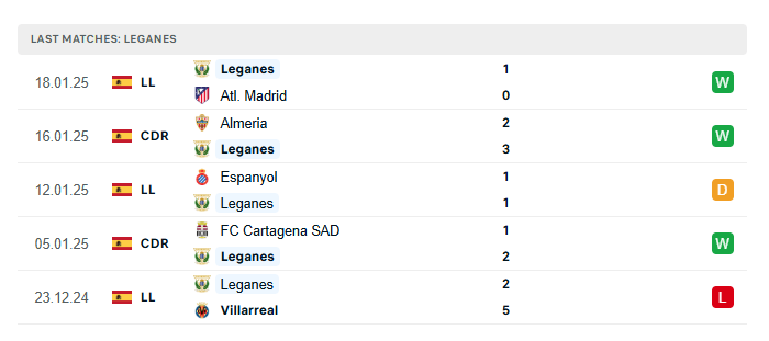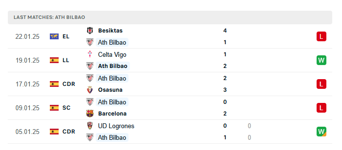 Phong độ gần đây Athletic Bilbao vs Leganes