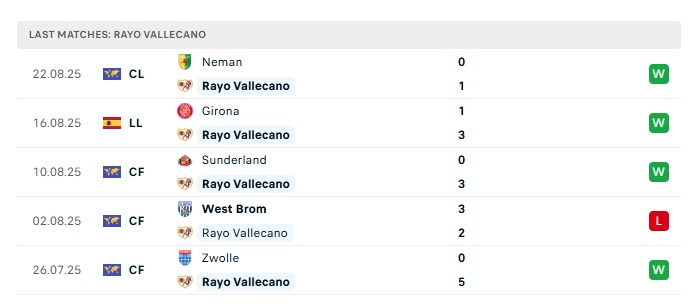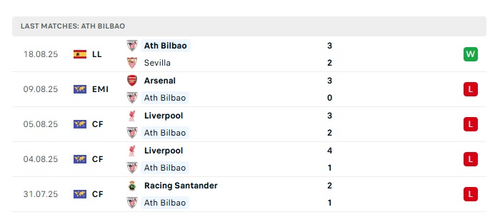 Phong độ gần đây Athletic Bilbao  vs Rayo Vallecano