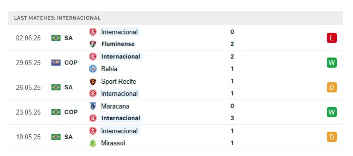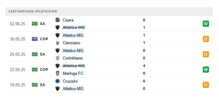 Phong độ gần đây Atl. Mineiro vs Internacional