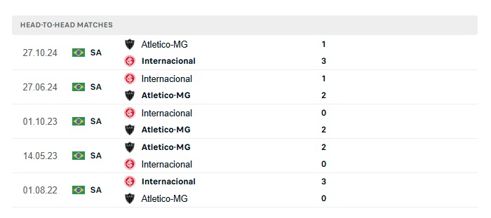 Lịch sử đối đầu Atl. Mineiro vs Internacional