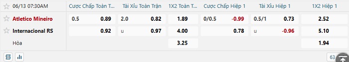 Soi kèo châu Á, kèo Atl. Mineiro vs Internacional