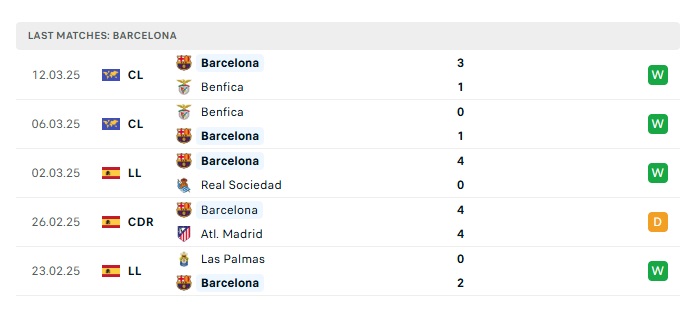 Phong độ gần đây Atletico Madrid vs Barcelona