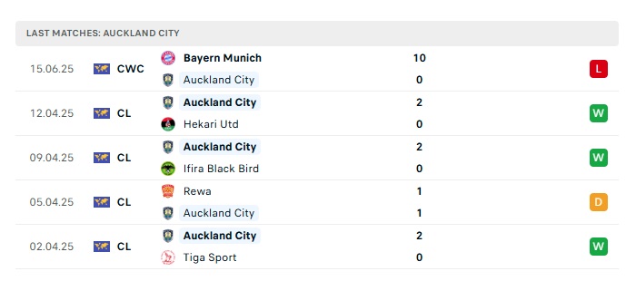• Phong độ gần đây Auckland City