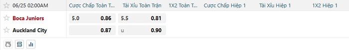 Bảng tỷ lệ kèo bóng đá Auckland City vs Boca Juniors