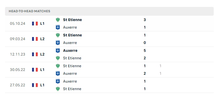 Lịch sử đối đầu Auxerre vs Saint Etienne