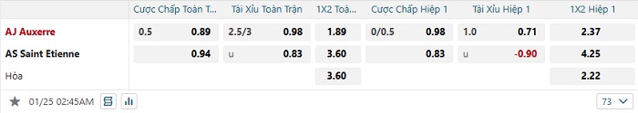 Bảng tỷ lệ kèo bóng đá Auxerre vs Saint Etienne
