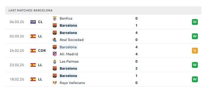 - Phong độ gần đây Barcelona