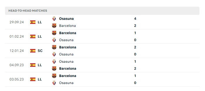 Lịch sử đối đầu Barcelona vs Osasuna