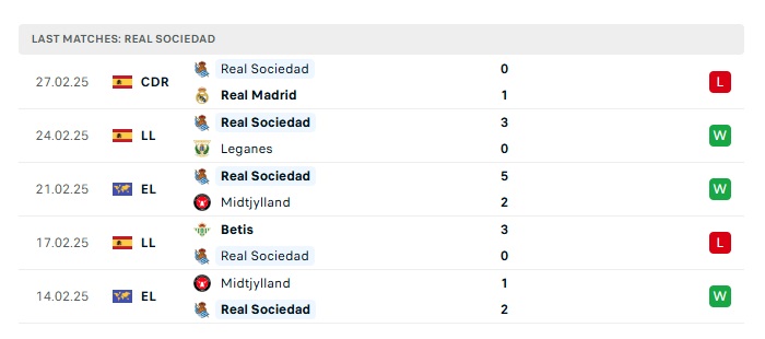Real Sociedad: Remiro; Aramburu, Zubeldia, Elustondo, Lopez; Zubimendi; Kubo, Olasagasti, Marin, Gomez; Oyarzabal.
