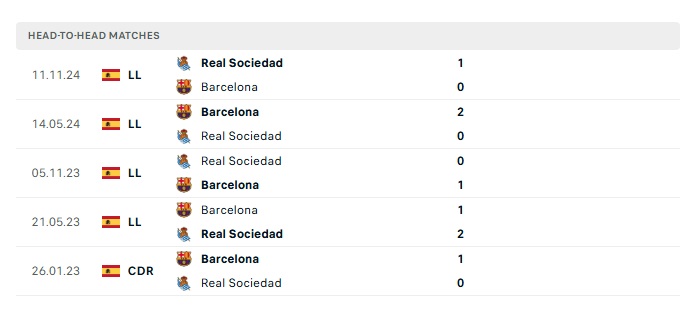 Lịch sử đối đầu Barcelona vs Real Sociedad