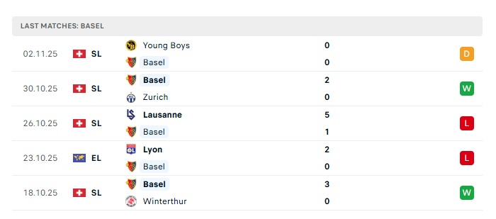 Phong độ gần đây Basel vs Steaua Bucuresti