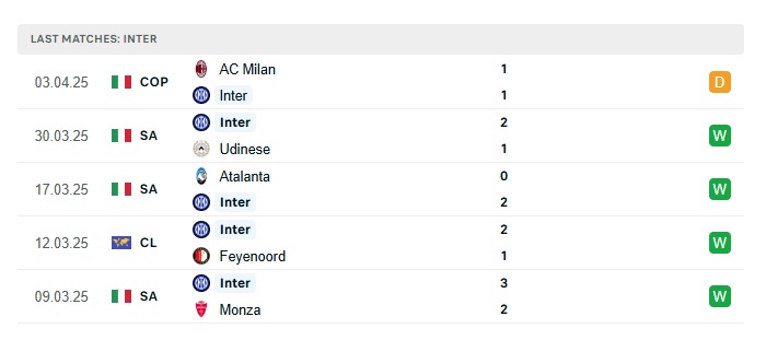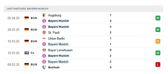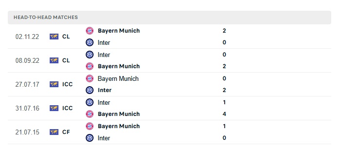 Phong độ gần đây Bayern Munich vs Inter Milan
