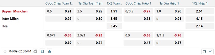 Bảng tỷ lệ kèo nhà cái Bayern Munich vs Inter Milan