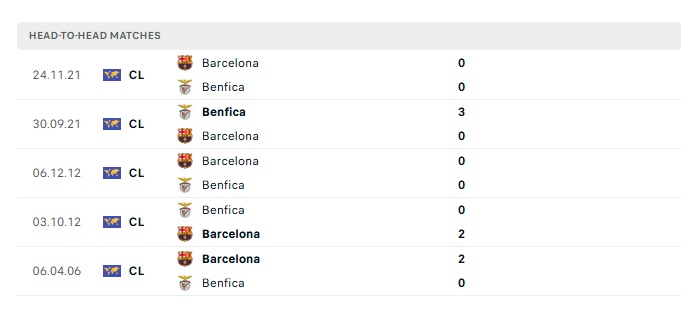 • Kèo tỷ số H2 Benfica vs Barcelona: 1-2