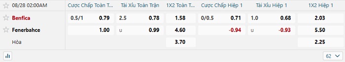 Bảng kèo bóng đá Benfica vs Fenerbahce