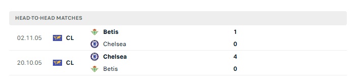 • Kèo tỷ số H2 Betis vs Chelsea: 1-1