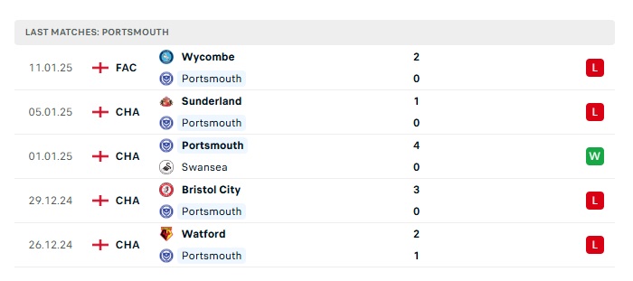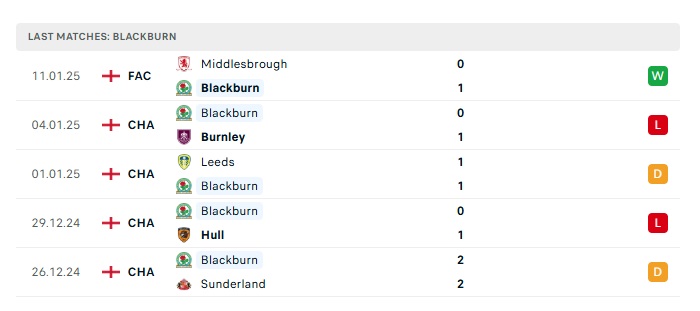 Phong độ gần đây Blackburn Rovers vs Portsmouth