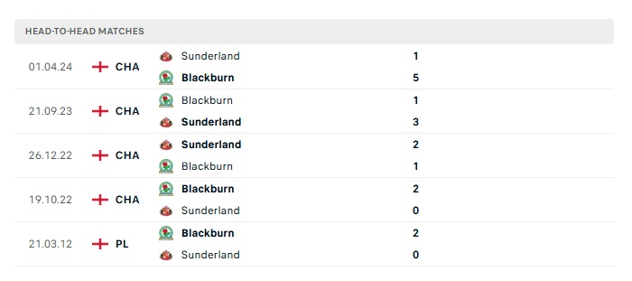 - Kèo tỷ số H2 Blackburn vs Sunderland: 1-0